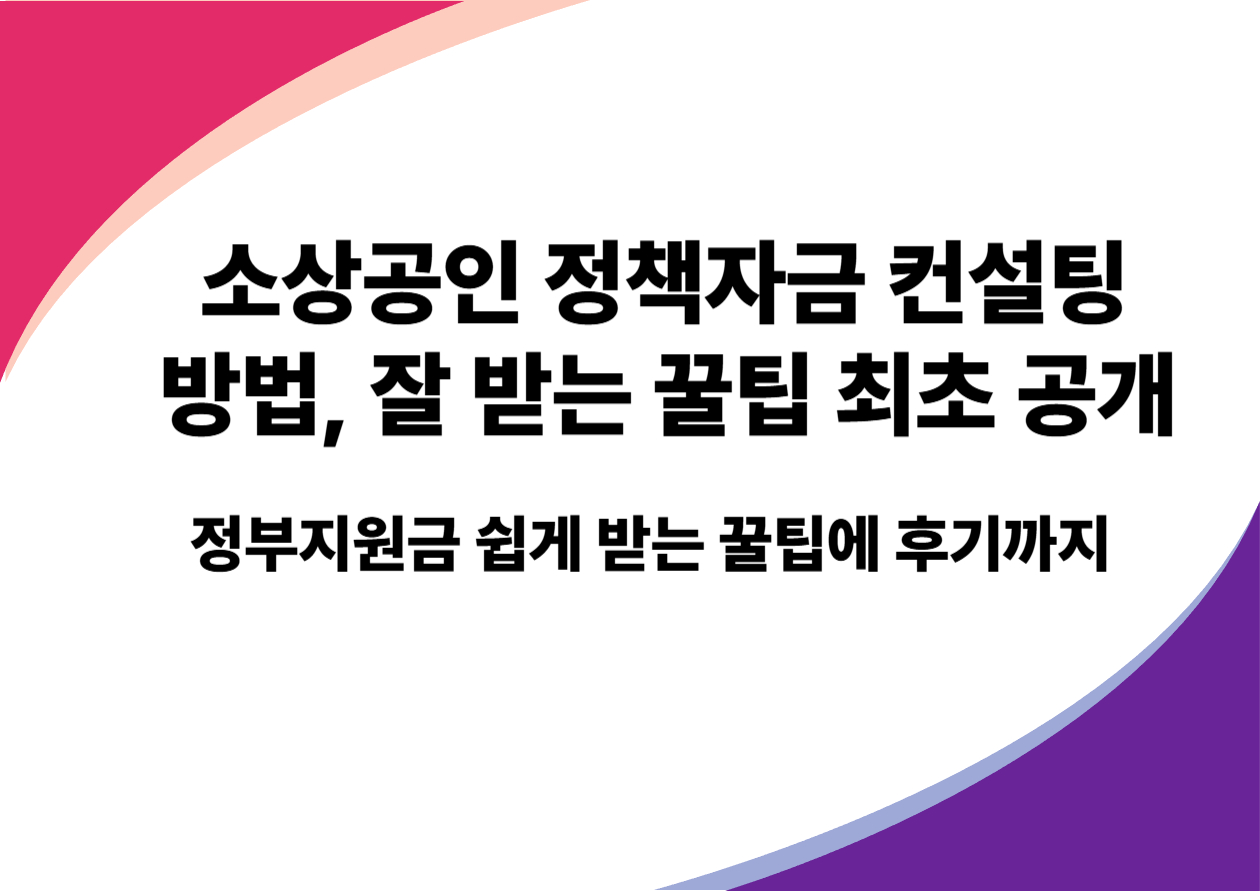 정부지원 자금 신청 어렵게 느껴지시나요? 소상공인을 위한 정책자금 컨설팅을 통해 신청서 작성부터 사업계획서 작성까지 전문가의 도움을 받아보세요. 실제 후기와 함께 2025년 최신 컨설팅 신청방법을 정리했습니다.