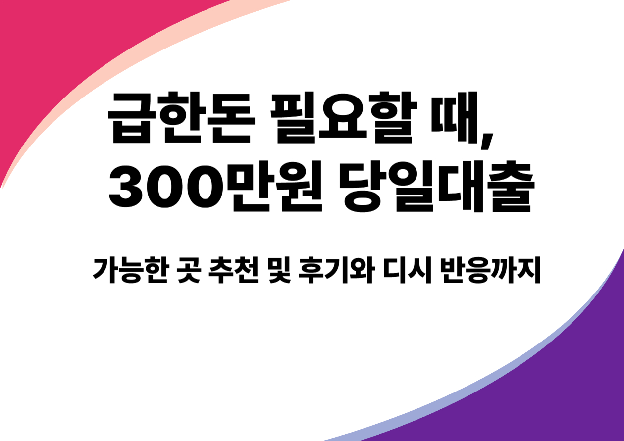 갑자기 급한 돈 300만원이 필요할 때, 어디서 당일대출이 가능할까요? 2025년 기준, 신용점수와 조건별로 추천 가능한 대출 상품을 정리했습니다. 실제 이용 후기, 디시 반응, 모바일 간편대출 순위까지 구글 SEO에 맞게 티스토리용으로 정리했어요.
